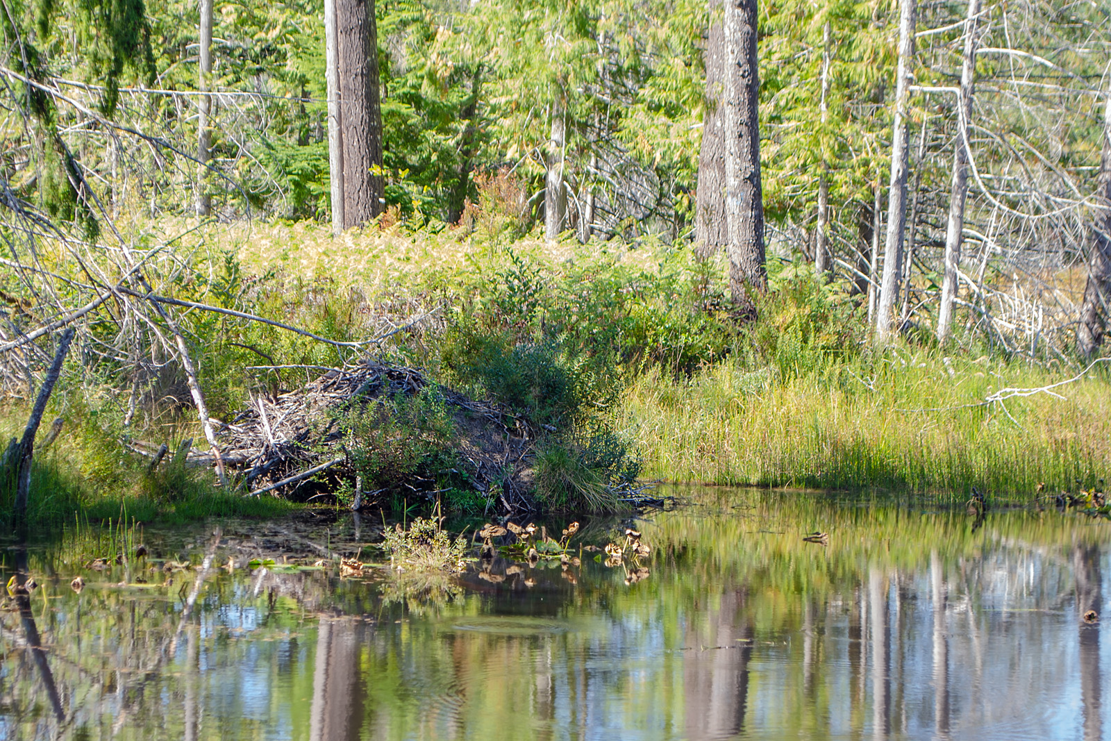 | The beaver lodge, as I have always seen it, from the side of the highway. |